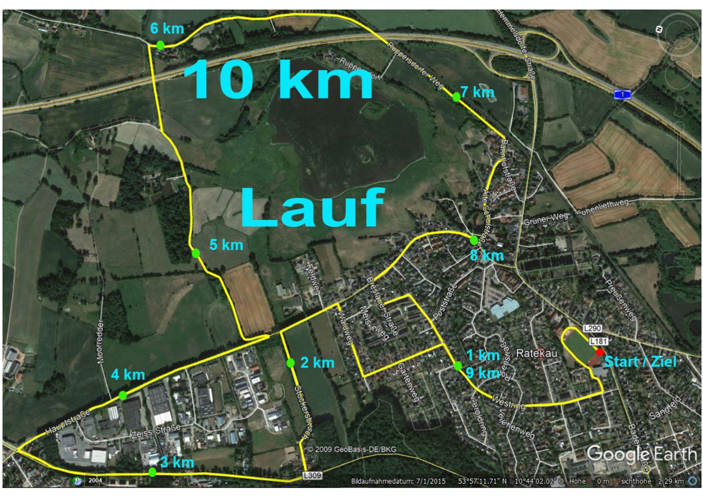 Rund um Ratekau bietet insgesamt fünf, inkl. der seit 2019 vom DLV amtlich neu vermessenen (Bestzeiten tauglich) fünf und zehn km, Strecken an. Die Läuferinnen und Läufer können zwischen zwei (Einsteiger- und Schüler-Lauf), fünf- und zehn sowie den traditionellen fünfzehn Kilometern, bestehend aus der fünf km und folgend der zehn km Strecke, wählen. Der traditionelle Auftakt des Lauf-Events findet durch den Start der Bambinis in der Running-Arena statt. Sie drehen eine 400-Meter-Runde auf der Tartanbahn.